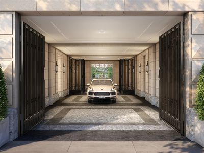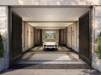The elegantly appointed interiors showcase white oak flooring, open kitchens with Calacatta marble counters and high-end appliances, and luxurious primary bathrooms with rain showers and heated floors. Social and entertainment spaces include a cozy library and lounge with a working fireplace, as well as an expansive club floor with a billiards room, bar, and private dining with a catering kitchen.